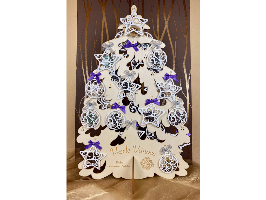 Vánoční stromeček dřevěný s čokoládami - oboustranný
