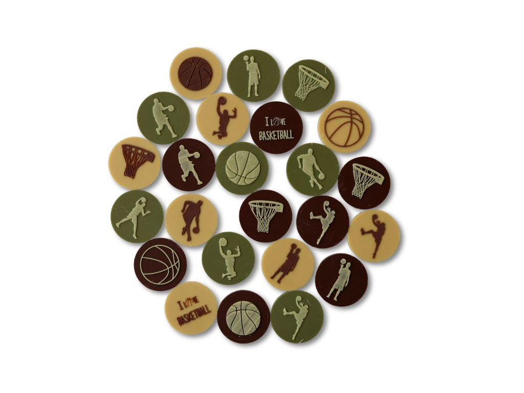 Balení obsahuje 24 kusů čokoleček s BASKETBALL motivy: