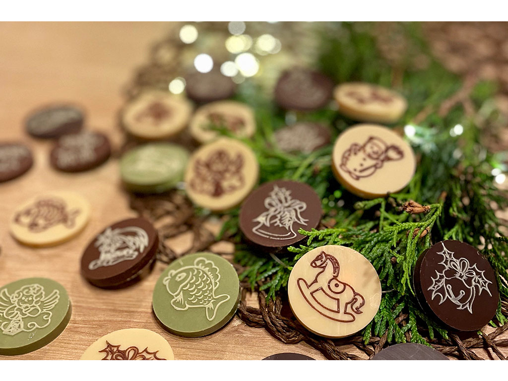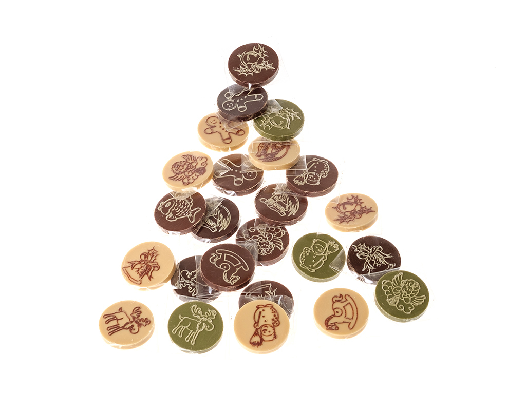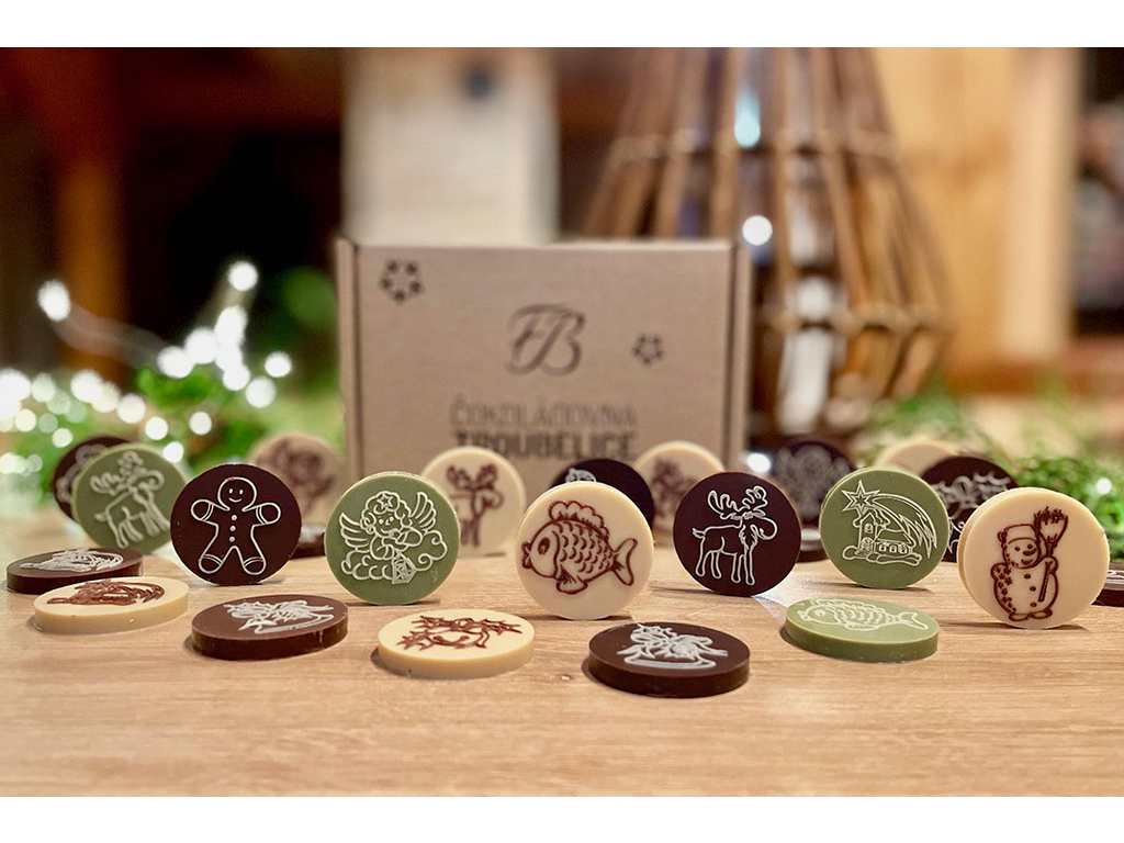 Čokoládová kolečka s krásnými vánočními motivy nejen do adventního kalendáře. Pokud máte doma náš dřevěný adventní kalendář z minulého roku, stačí doplnit čokolády a zpříjemnit si čekání na Vánoce. Čokoládová kolečka jsou vhodná i jako ozdoba na stromeček nebo drobný dárek. Sada čokoládových koleček je uložena v dárkové kartonové krabičce s logem Čokoládovny Troubelice.