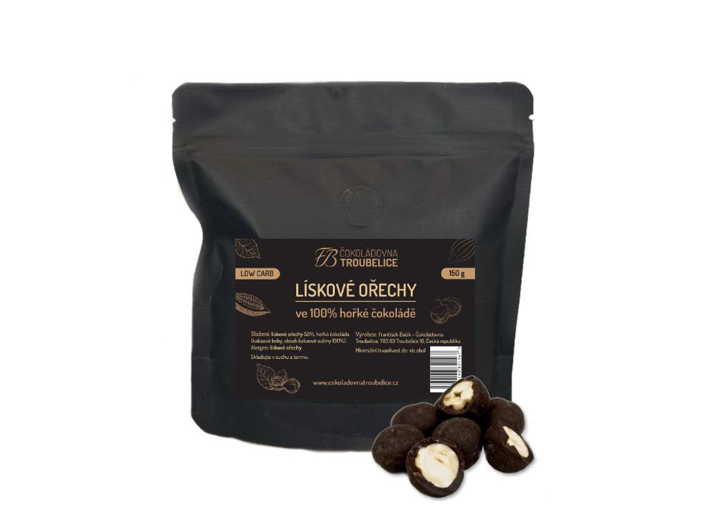 Novinka pro všechny příznivce LOW CARB neboli nízkosacharidového stravování - lískové ořechy obalené v naší 100% hořké čokoládě!
