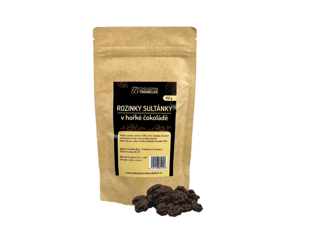 Rozinky sultánky obalené v hořké čokoládě té nejvyšší kvality.