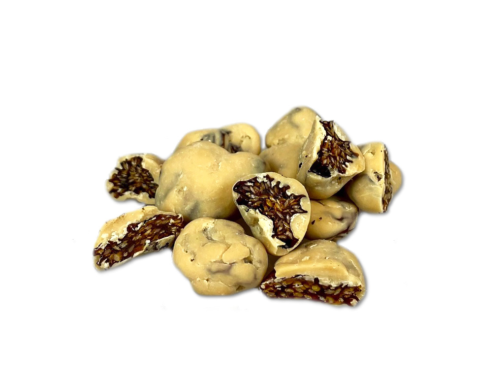 Obalili jsme ji v naší 40% bílé čokoládě té nejvyšší kvality.