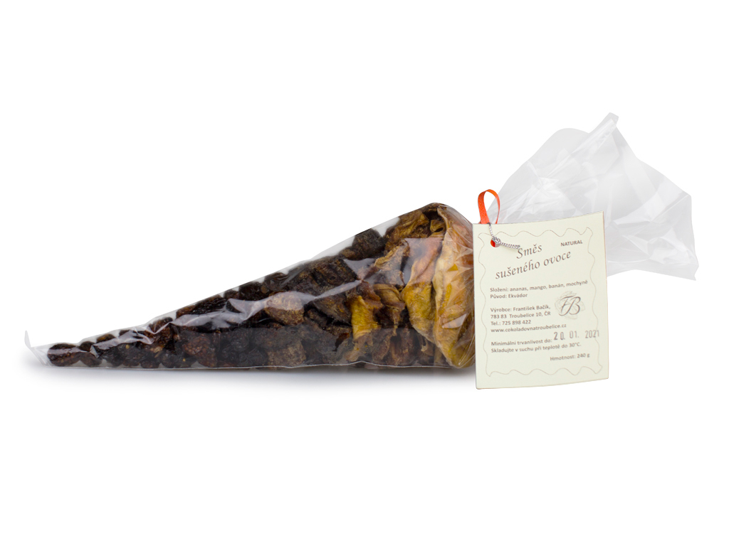 Mix sušeného ovoce natural (banán, mango, mochyně, ananas) v dárkovém balení.