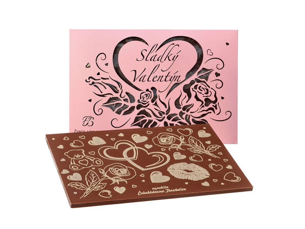 Čokoláda Valentýn - růžová perleť, 120 g, Čokoládovna Troubelice